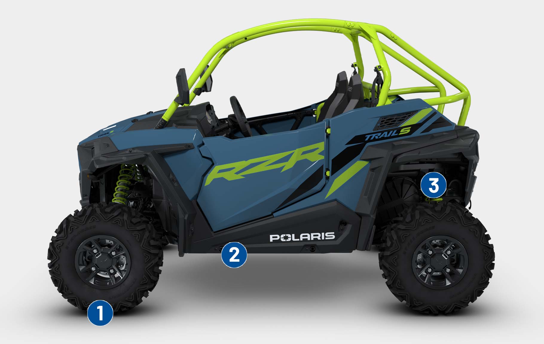 O RZR Trail S oferece uma postura esguia, potência responsiva, agilidade acentuada e conforto para todo o dia.